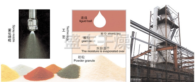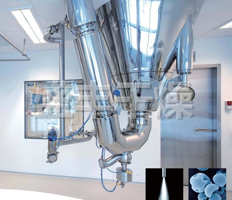 本機組是一種可以同時完成干燥和造粒的裝置。按工藝要求可以調節料液泵的壓力、流量、噴孔的大小,